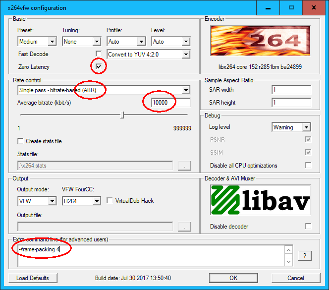 - Bei extra command line: "--frame-packing 3" eintragen (für SBS-H), ohne die Anführungszeichen.