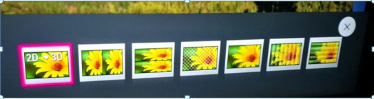 Im Gegensatz zum 27" Monitor muss ich aber den TV per Fernbedienung auf 3D umschalten. Dabei werden mir 7 verschiedene 3D-Modi angezeigt (siehe unen). Ich weiß nicht, ob es dazu eine Kommunikation über HDMI mit dem Laptop gibt.