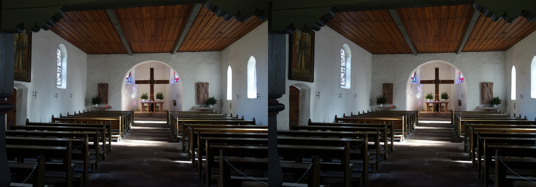 Das Senkrechtstellen des Turmes, der vermutlich wirklich sehr senkrecht steht, bewirkt mit den üblichen Methoden der Ausrichtung eine Verzerrung der realen Proportionen. Das Stereo wirkt auf mich unnatürlich: Der Turm ist jetzt oval und das Dach schief aufgesetzt. Es interessiert mich, ob dieser Anblick tatsächlich als korrekt angesehen wird.