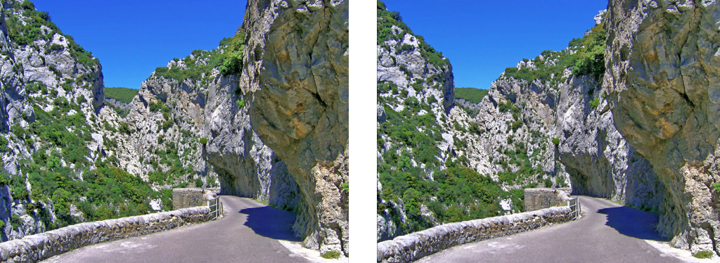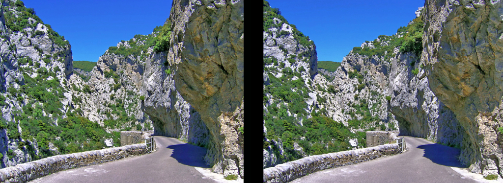 Die Scheinfensterverletzungen entstehen daher, dass am rechten Rand das rechte Auge Dinge sieht, die das linke nicht sieht und am linken Rand das linke Auge Dinge, die das rechte nicht sieht. Das darf nicht sein. Die Lösung besteht darin, die Bereiche, die ein Auge nicht sehen darf, durch einen Balken in der Umgebungsfarbe des Bildes, also in der Regel schwarz, abzudecken.