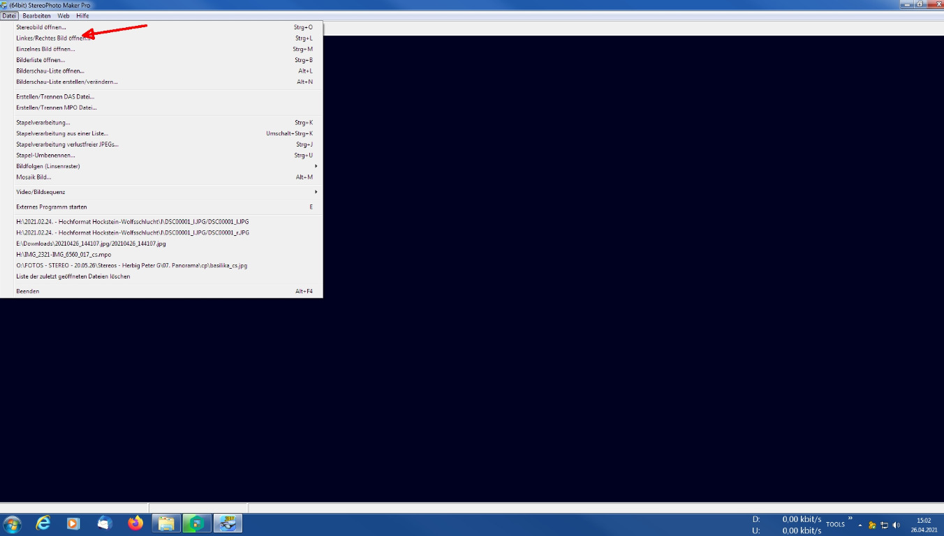 Geöffnet wird im Menü mit "linkes/rechtes Bild" öffnen. (siehe 1 Bild) Zuerst sollte das linke Bild geöffnet werden. Wenn dann im Menü, "Original" angeklickt ist, liegt es bei mir auch auf der linken Seite, wie Du im nächsten (2) Bild siehst. Das Rechte ebenso.
